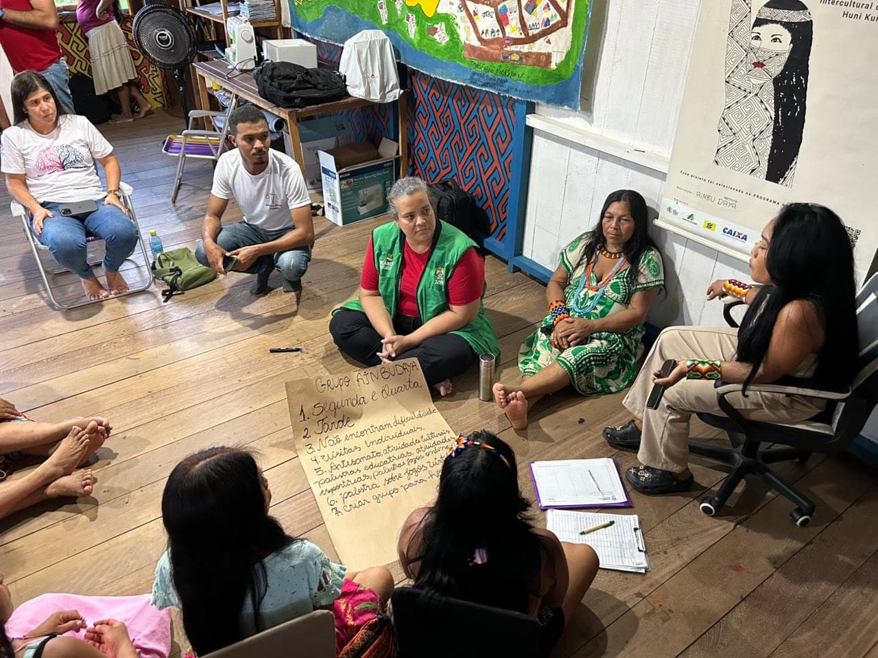 Também foi feita foi feita uma oficina orientativa com um grupo de mais de 25 mulheres indígenas da Associação Casa Ainbu Daya.