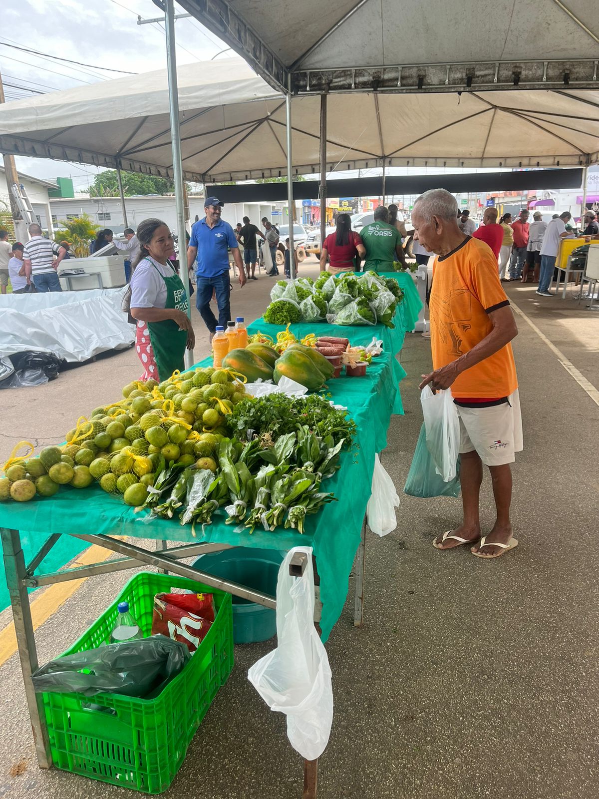 Os produtores da agricultura familiar também estão presentes, vendendo o cheiro verde, limão, alface dentre outros. “Todas as hortaliças que servem para acompanhar o peixe estamos oferecendo. Aproveitamos para convidar a população”, comentou Sandro Crisóstomo, do pólo Elias Moreira.
