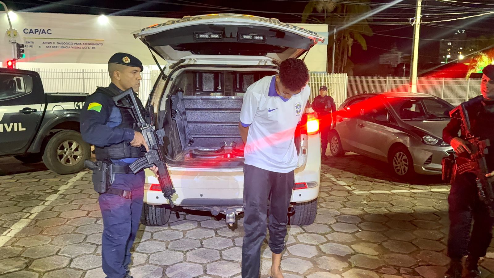 De acordo com a corporação, uma equipe da Força Tática do 2º Batalhão, com apoio de outra guarnição, realizava patrulhamento preventivo na região quando abordou o jovem em atitude suspeita. A ocorrência foi registrada na Rua Rodovia Acre, no bairro Santa Cecília.