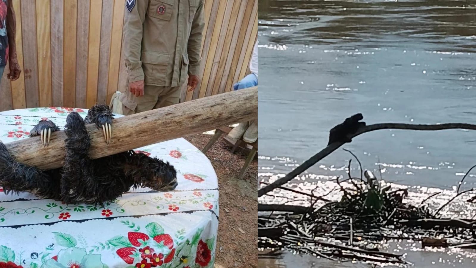 Diante da situação, moradores se mobilizaram e conseguiram retirar o animal da área de risco, levando-o até um local seguro às margens do rio. Em seguida, o bicho-preguiça foi encaminhado para uma distribuidora próxima, onde ficou abrigado enquanto aguardava o resgate por parte do Corpo de Bombeiros.